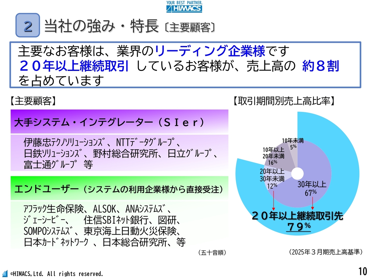 さらに、30年以上継続してお取引しているお客さまが売上高の約7割を占めており、20年以上のお客さまを含めると約8割となっています。