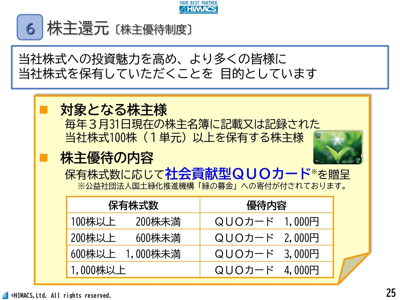 質問:長期ホルダー向けの優待は検討されていないのでしょうか?