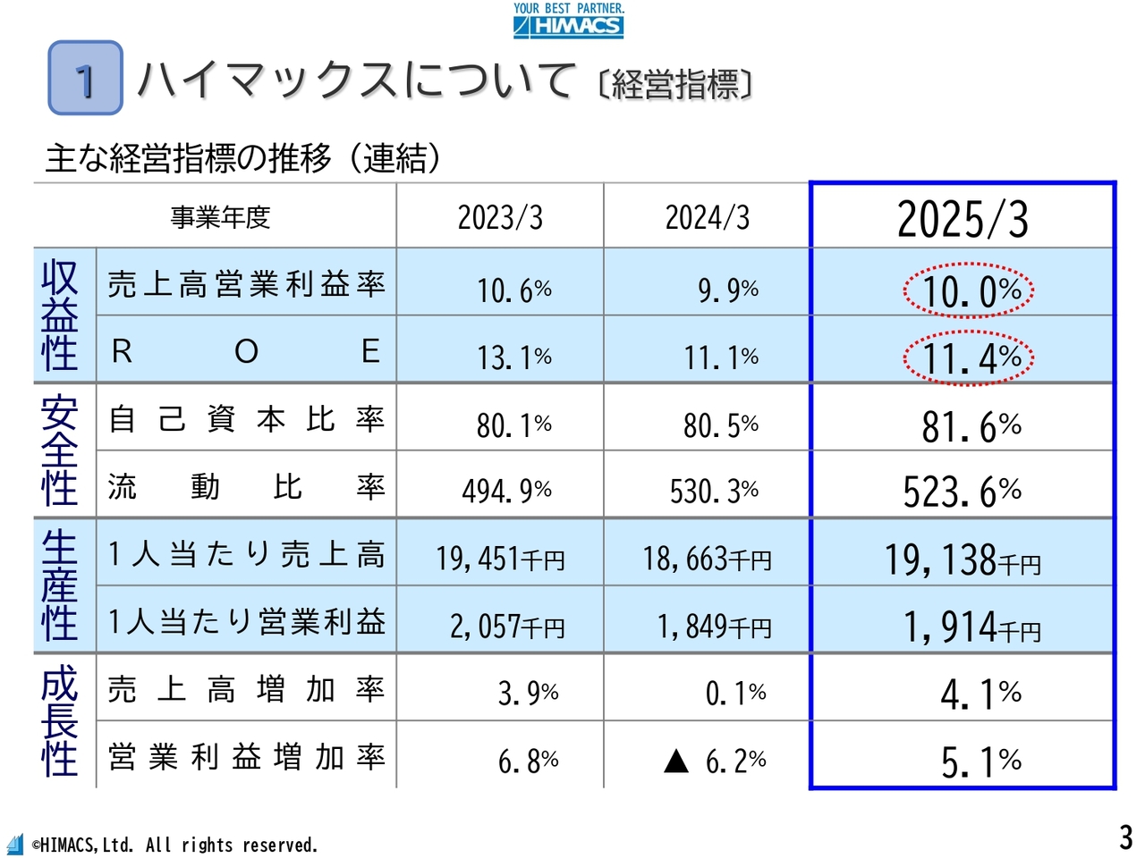 ハイマックスについて〔経営指標〕