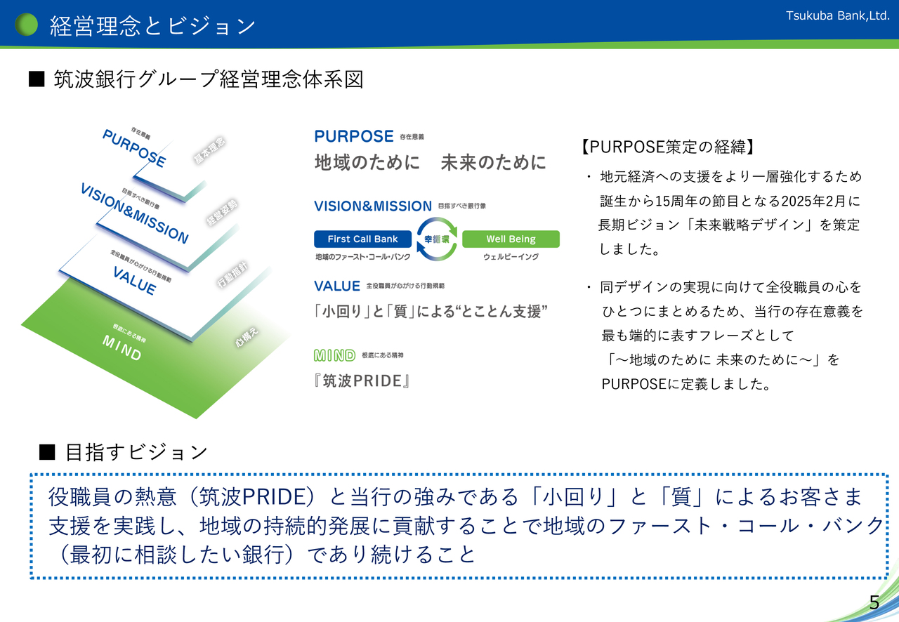 右下5ページをご覧ください。当行の「パーパス」についてご説明します。