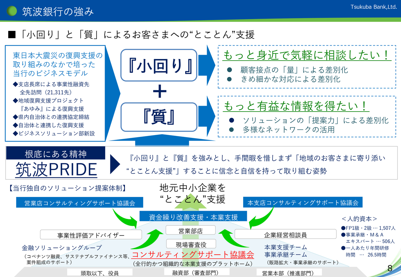 当行の強みは、「小回り」と「質」によるお客さまへの“とことん”支援です。