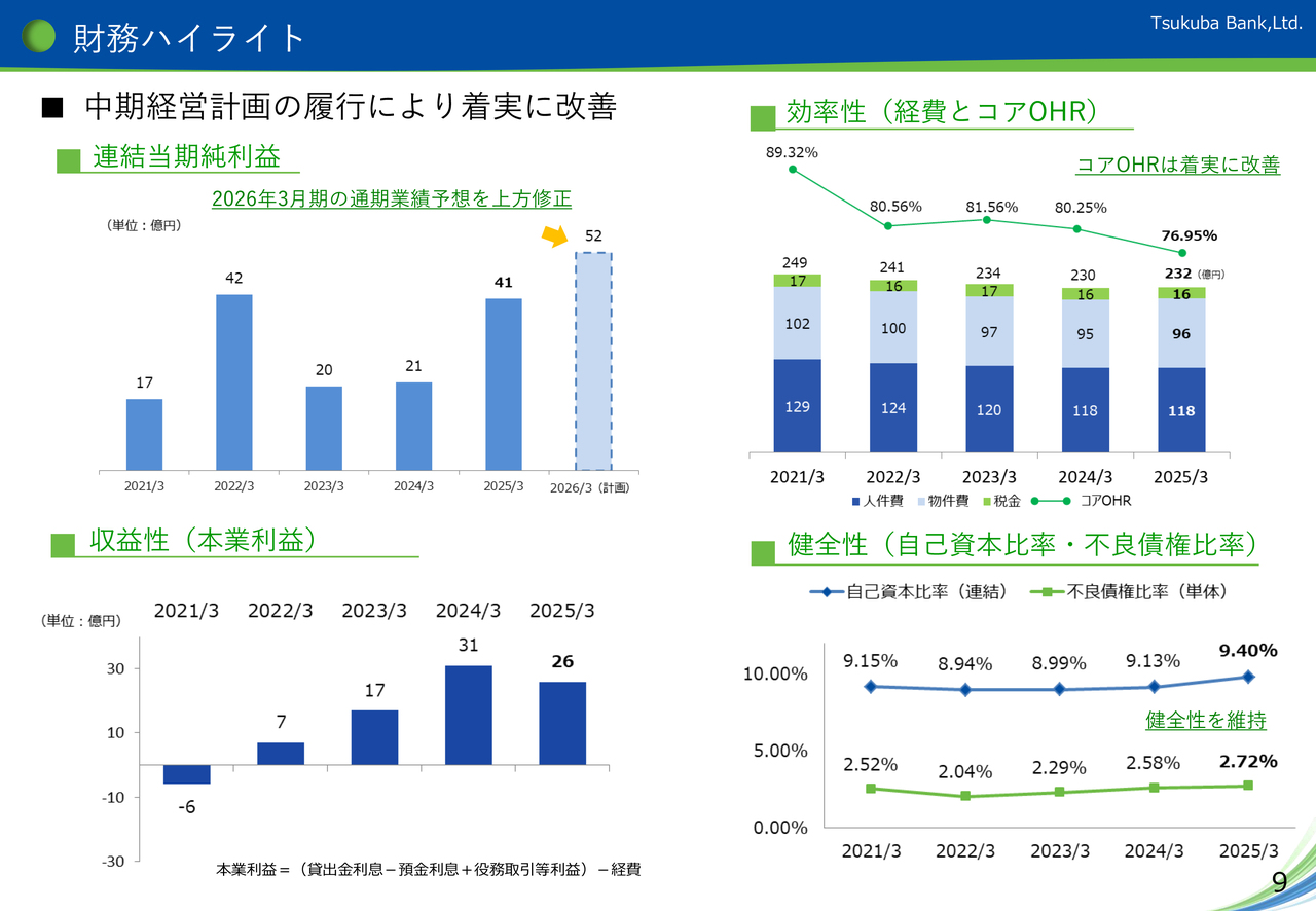 ここで、当行の「財務ハイライト」についてご説明します。右下9ページになります。
