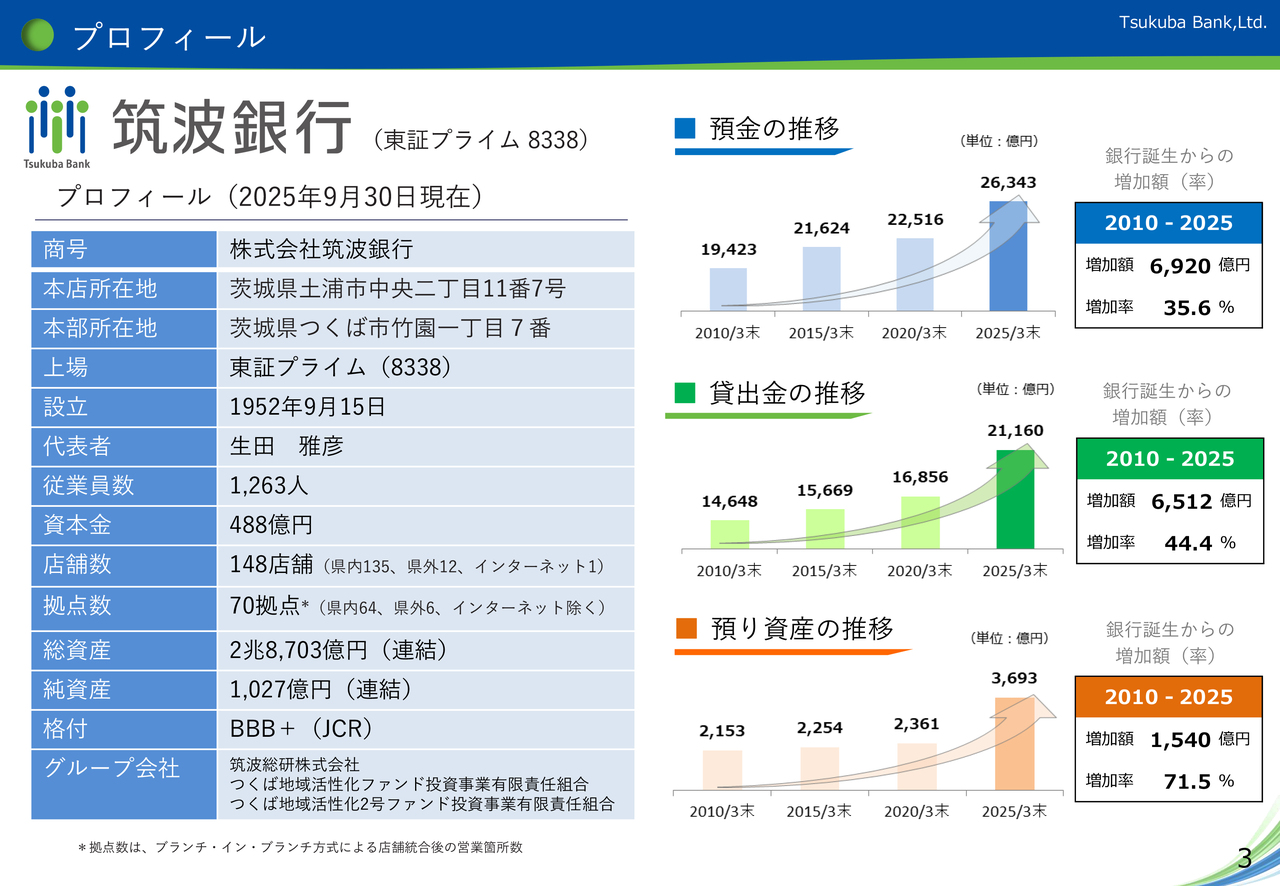 まずは、右下3ページ、当行の簡単なプロフィールについてです。