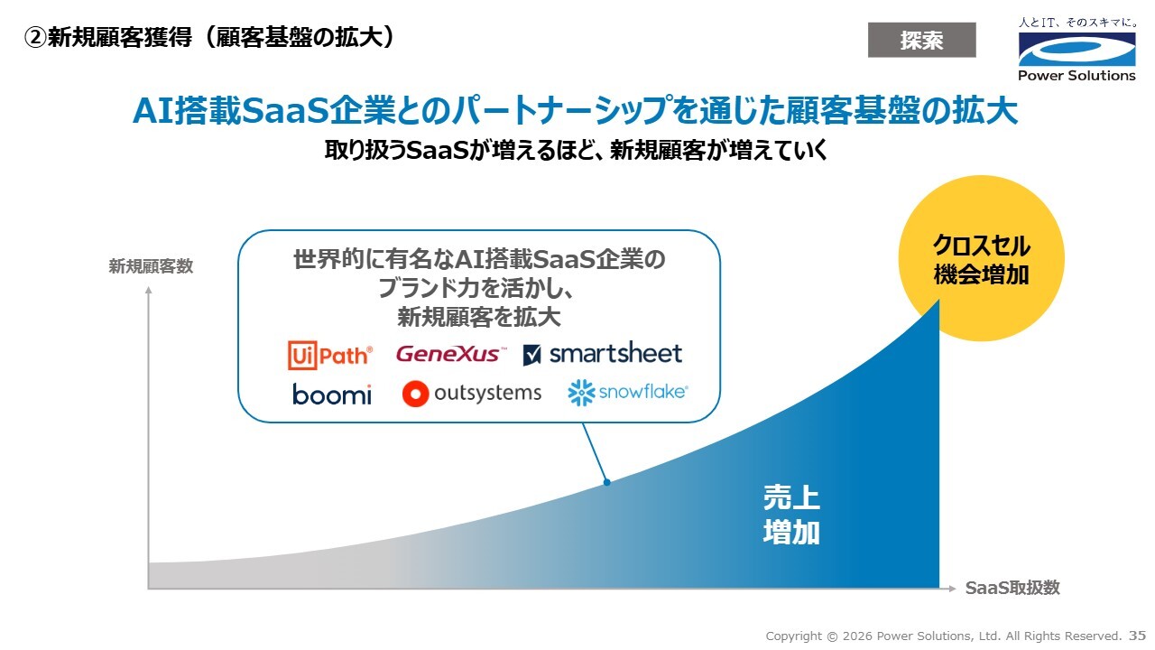 高橋:2つ目は、新規顧客の獲得です。世界的に有名なAI搭載SaaS企業のブランド力を活用し、新規顧客を拡大していきます。