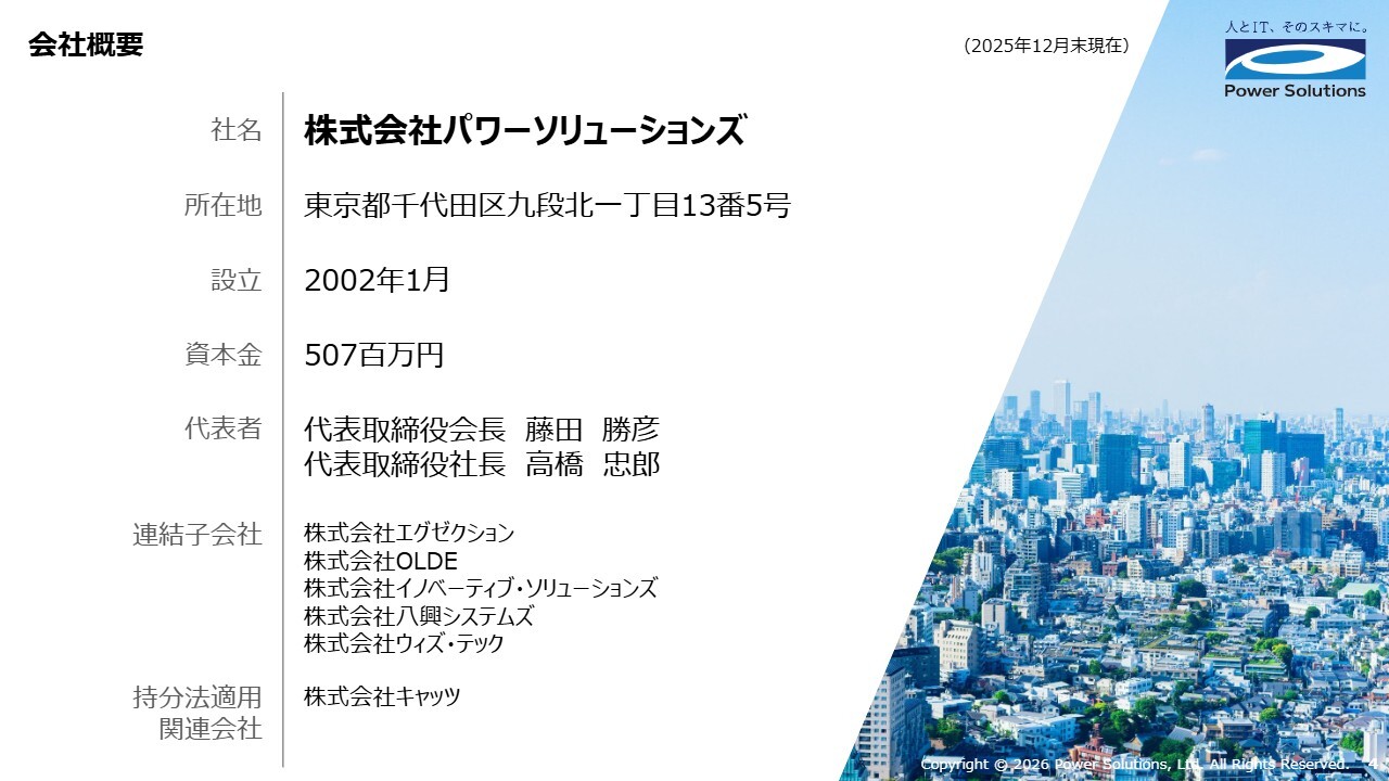 高橋忠郎氏(以下、高橋):株式会社パワーソリューションズ代表取締役社長の高橋です。この度は、当社のご説明の場にご参加いただき、誠にありがとうございます。