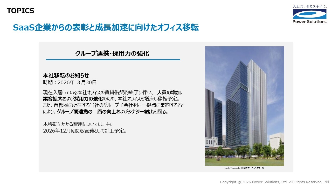 高橋:2026年3月30日に本社オフィスを移転する予定です。パワーソリューションズと首都圏に所在するグループ会社4社を同一拠点に集約し、グループ間連携のさらなる強化とシナジーの創出を図ります。
