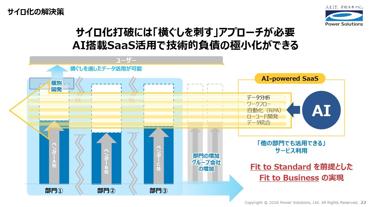 高橋:サイロ化を打破するためには、部門ごとのシステムやデータの壁を壊し、「横ぐしを刺す」アプローチが必要です。