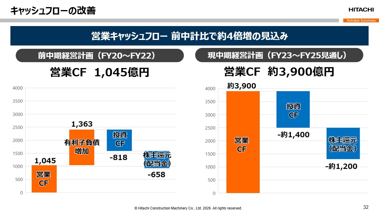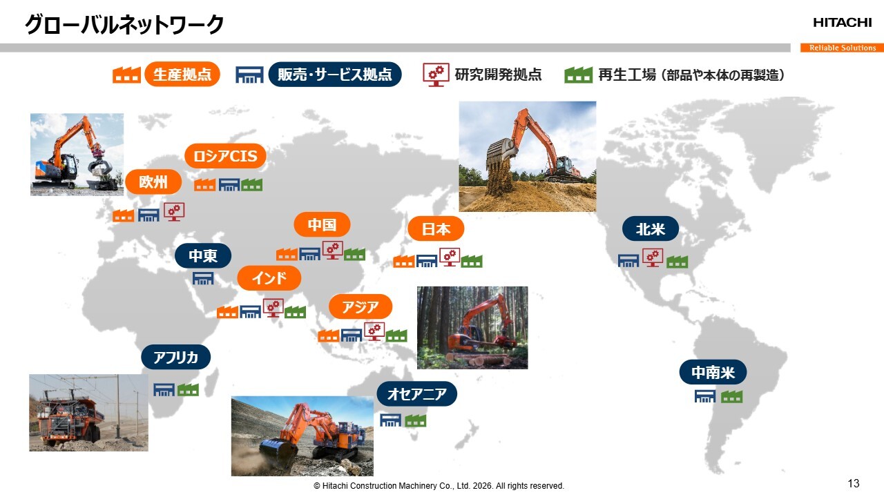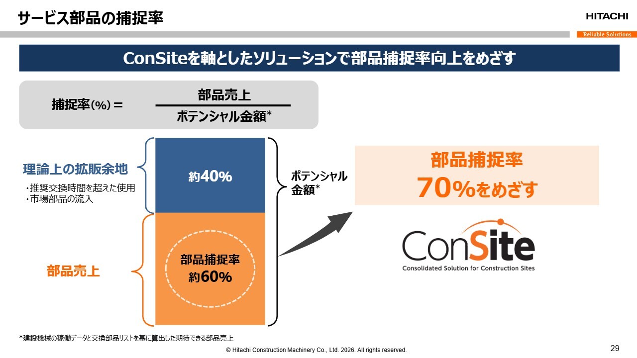 世界中でこれだけの機械が稼働しているため、アフターサービスの売上をしっかりと確保できれば、業績にも反映されます。また、新車販売に比べてアフターサービスや部品は利益率が高いため、今後もこれらを伸ばしていきたいと考えています。