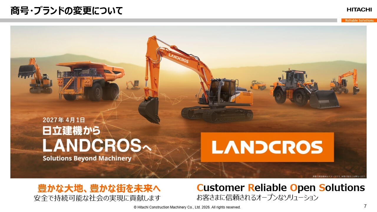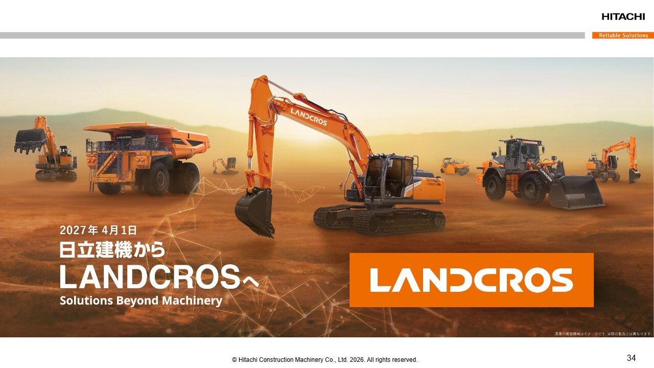 小俣:私たちは2027年4月より、日立建機からランドクロスに社名を変更します。ただし、長年作ってきた建設機械そのものに変更はありません。技術も品質も変わることはありません。