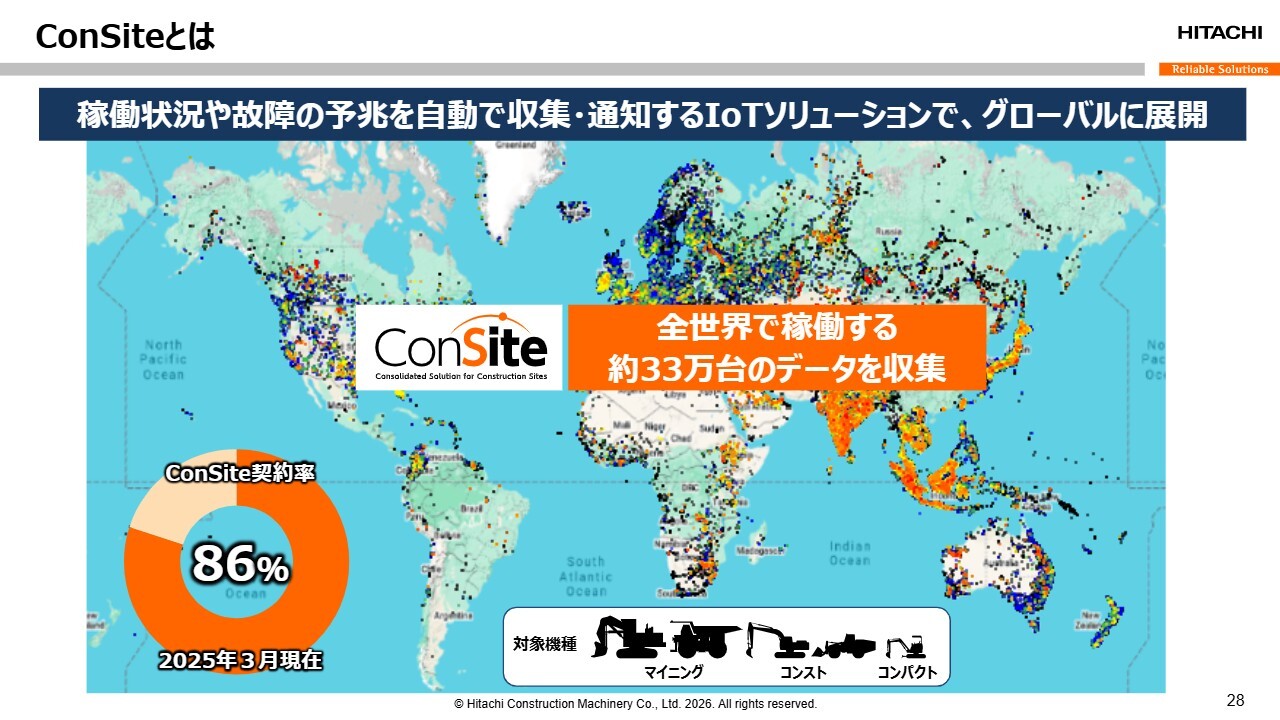 小俣:「ConSite」は現在、世界で稼働する30万台に搭載されています。契約率は86パーセントで、徐々に上昇傾向にあります。