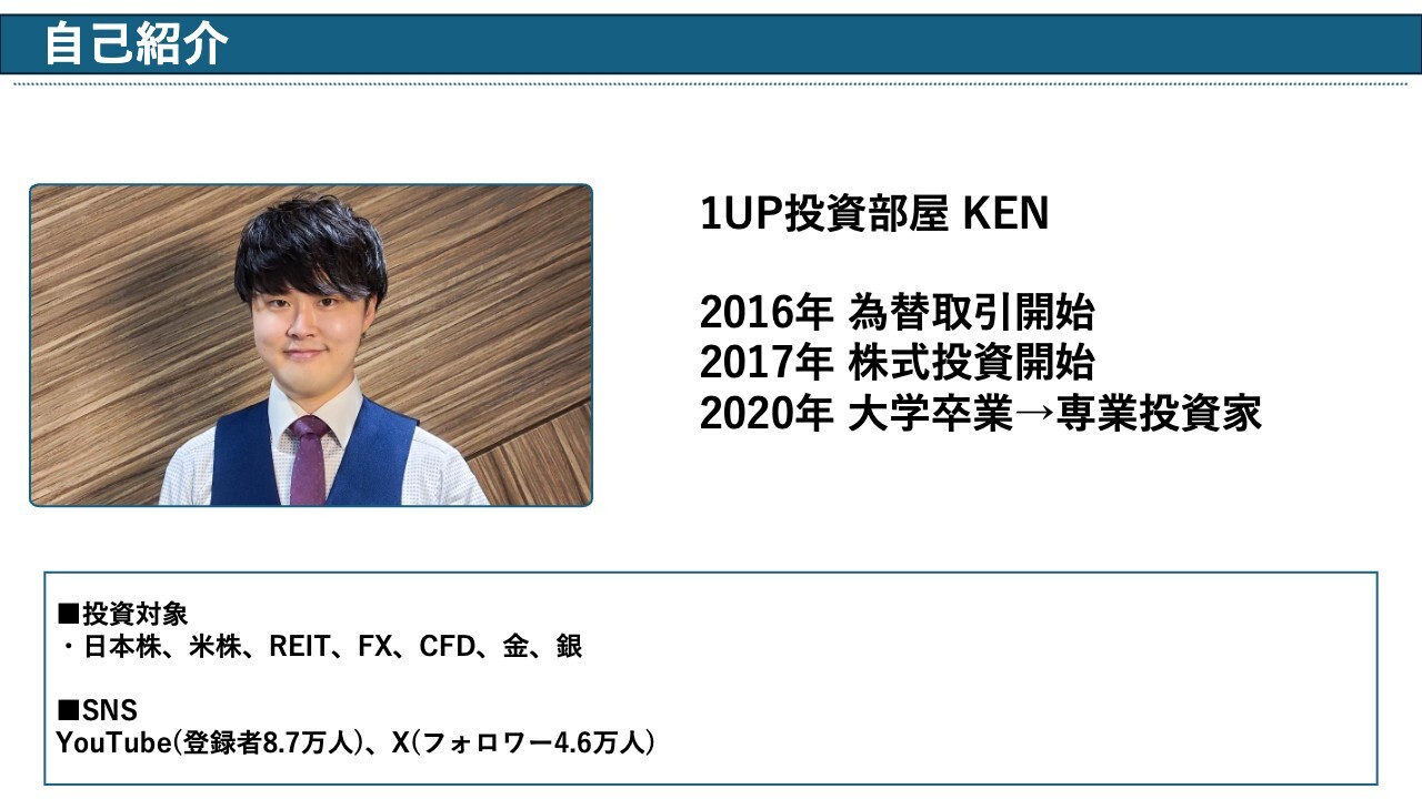 1UP投資部屋Ken氏:投資系YouTubeチャンネル「1UP投資部屋」のKenです。