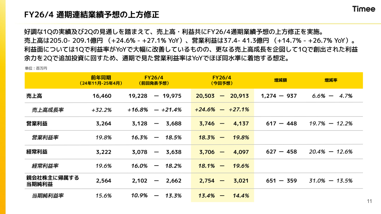 FY26/4 通期連結業績予想の上方修正