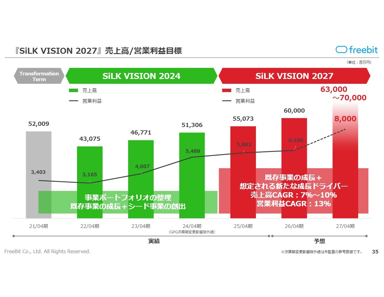 『SiLK VISION 2027』の最終年度である2027年4月期は、売上高は630億円から700億円、営業利益は80億円という数値目標を掲げています。この目標を達成するために、今期の残りの部分でもしっかりと施策を実施していきます。