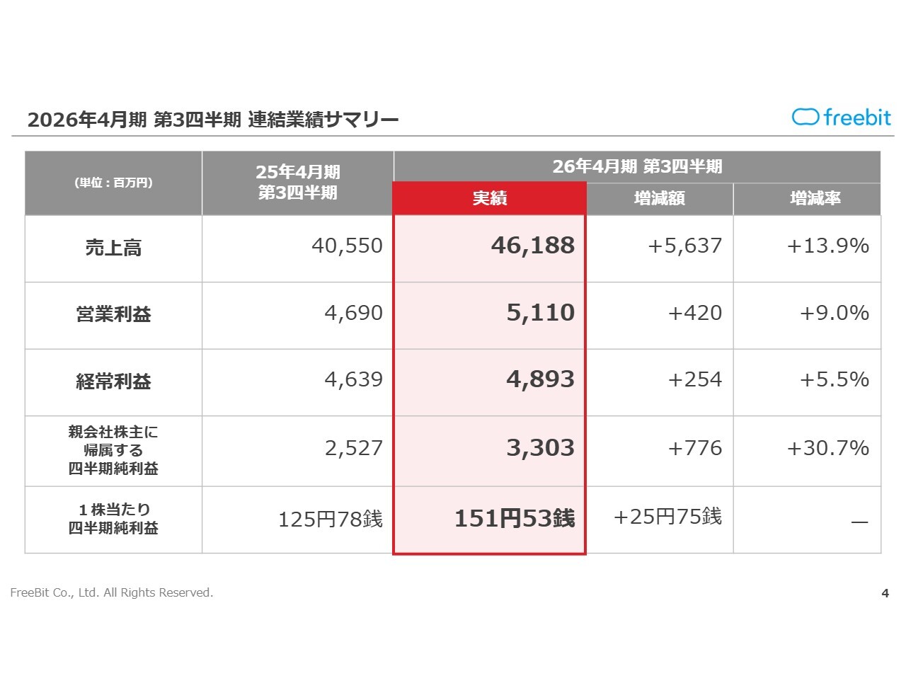 2026年4月期 第3四半期 連結業績サマリー