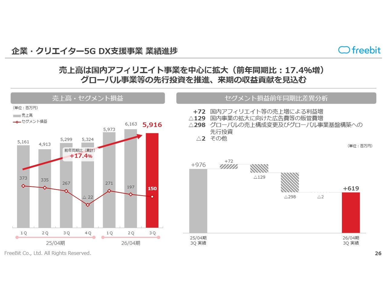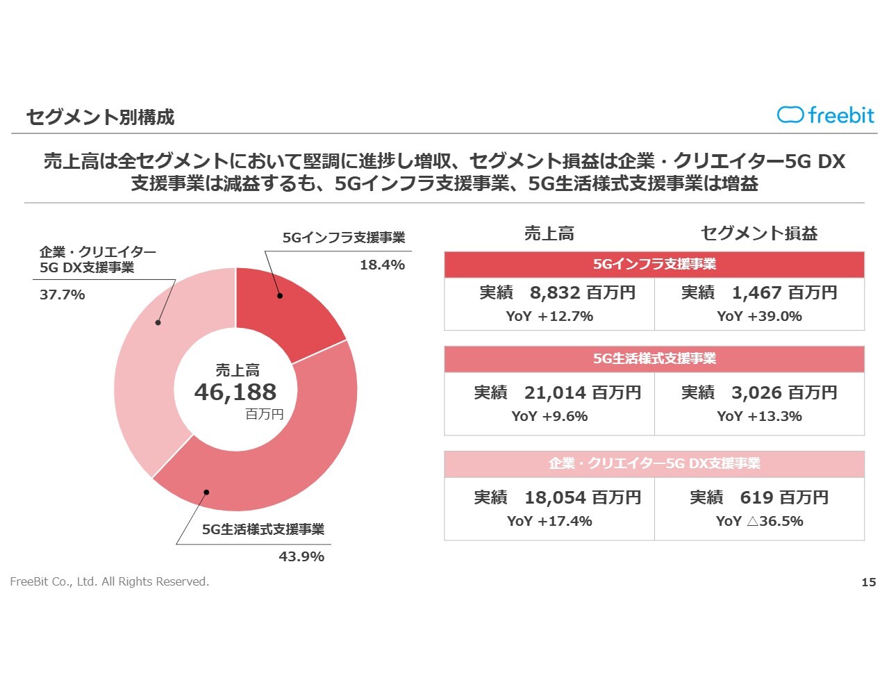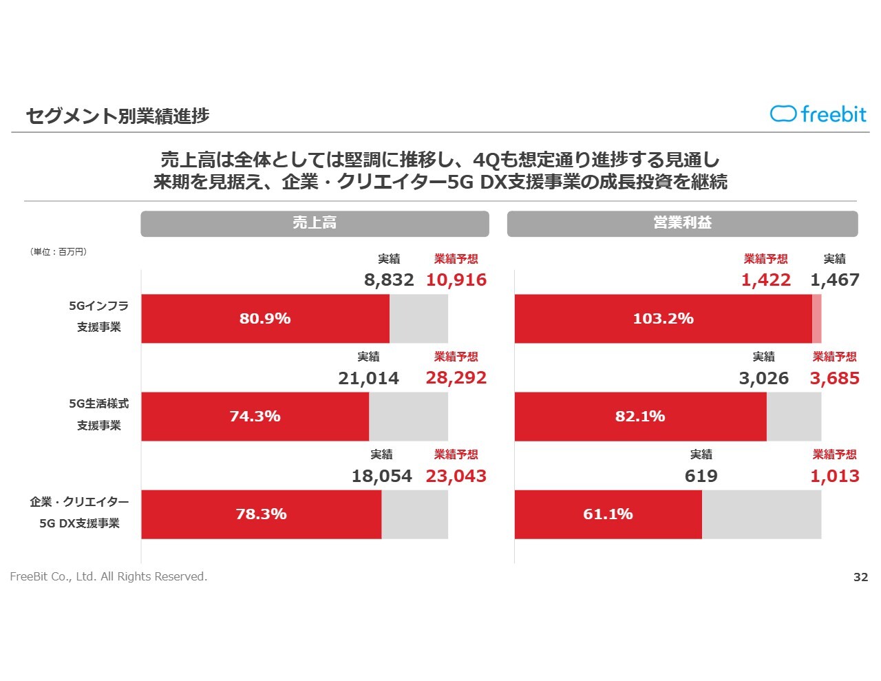 売上高については、セグメント全体が堅調に推移しており、第4四半期も想定どおり進捗する見通しです。来期を見据え、企業・クリエイター5G DX支援事業については今期も引き続き成長投資を実施していきたいと考えています。