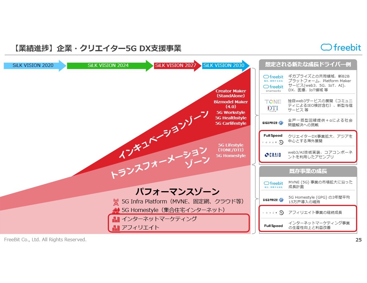 今期は『SiLK VISION 2027』を推進中です。フリービットグループでは、2021年から2030年にかけての10ヶ年計画を3つの中期経営計画に分割しており、そのちょうど中間地点にあたります。
