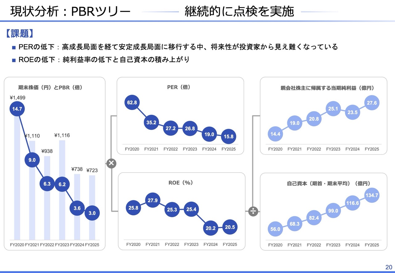ROEが低下している主な要因は、利益率の低下と自己資本の積み上がりです。当社としては、PBRツリーを一過性の分析に留めず、継続的に点検しながら改善に取り組む方針です。