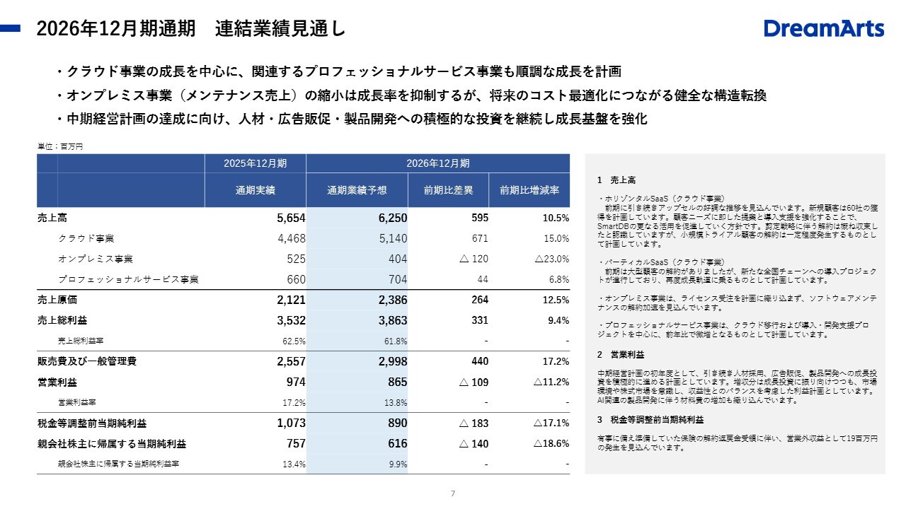 山本孝昭氏(以下、山本):株式会社ドリーム・アーツ代表取締役社長の山本です。本日はお忙しい中お越しいただき、ありがとうございます。2025年12月期の決算説明会を開催します。