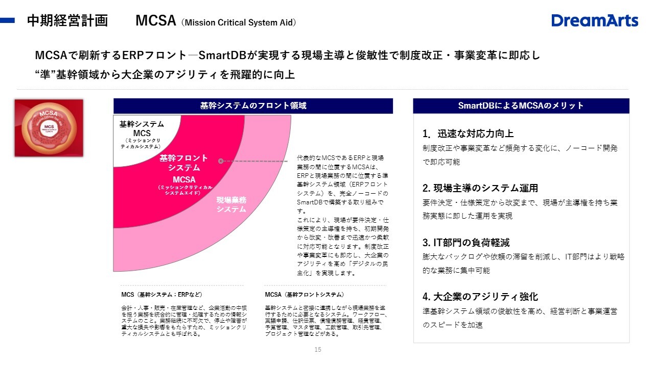 中期経営計画 MCSA(Mission Critical System Aid)