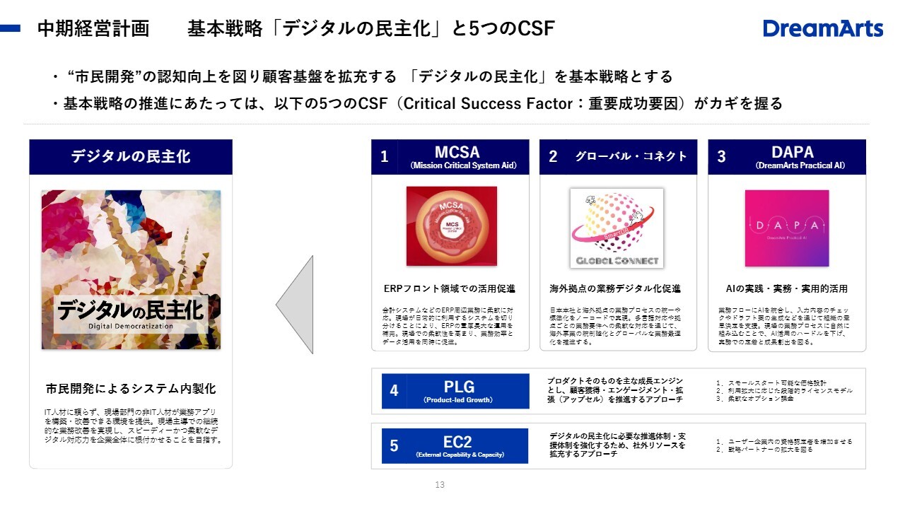 中期経営計画 基本戦略「デジタルの民主化」と5つのCSF