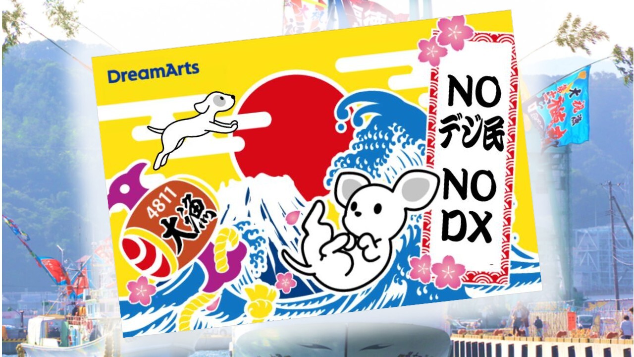 大漁の際は大漁旗を掲げますが、少し笑いを誘ったり印象づける目的で、ドリーム・アーツの大きな大漁旗を作り、「それを振れるときが来ますよ」ということをお伝えしています。ここまで、非常に平易なかたちで、我々が何を行おうとしているかという意図をご説明しました。