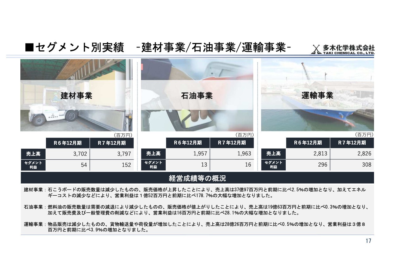 セグメント別実績 –建材事業/石油事業/運輸事業–