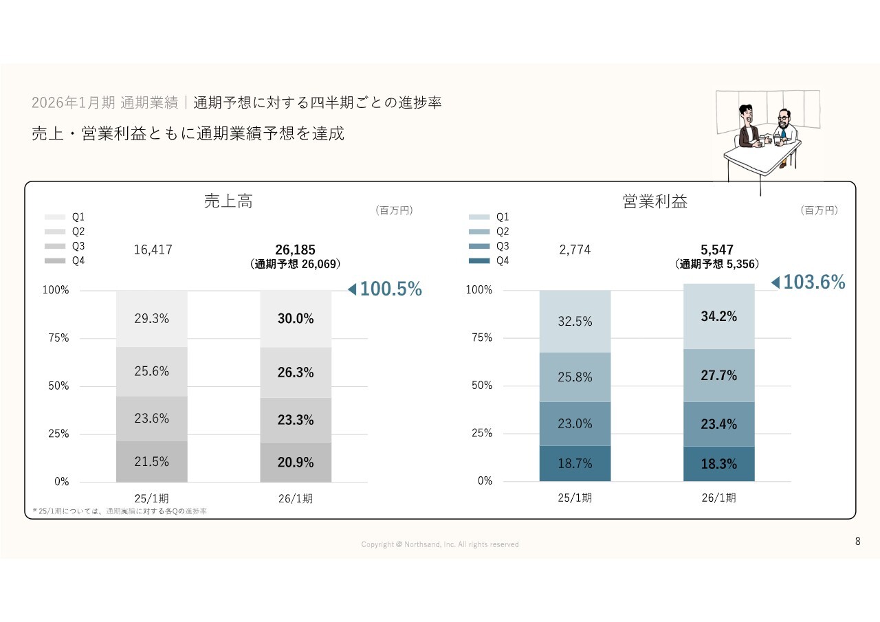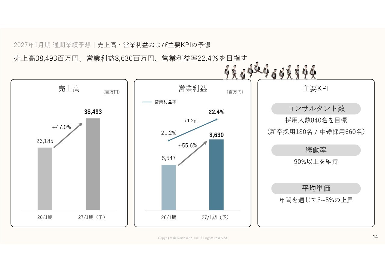 小久江省隆氏(以下、小久江):株式会社ノースサンド取締役CFOの小久江です。2026年1月期を振り返ると、コンサルタントの採用が非常に順調に進み、稼働も良好で、単価の向上も確保できました。これをもう1年、同じペースで継続していきたいと考えています。