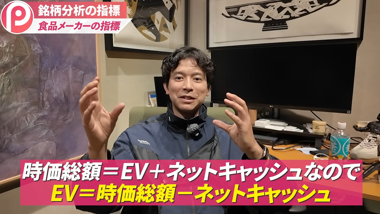 塩谷:EV/EBITDAはあくまで簡易的な考え方です。「時価総額=EV+ネットキャッシュ」という関係のため、これを変形すると「EV=時価総額-ネットキャッシュ」となります。時価総額から借金は足すことで、現金は引くことで、EVが算出できると覚えておくと良いでしょう。