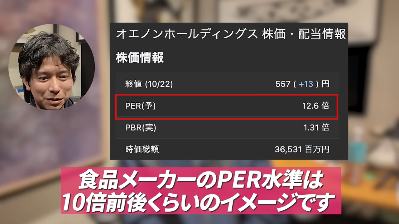 塩谷:例えば、焼酎を作っているオエノンホールディングスという会社があります。この会社をPERで見ると11倍前後で、食品メーカーの平均的な水準(10倍前後)からすると20パーセントほど高く見え、業績が良い時には9倍くらいに見えることもあります。PERだけ見ると「少し安いな」と思ってしまいます。