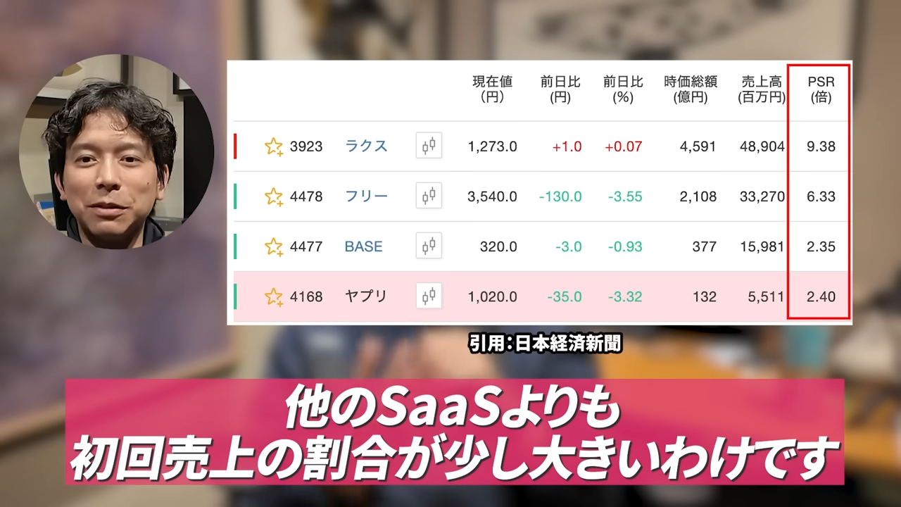 塩谷:そのため、PSRで見ると、他のSaaSと比較して初回売上の割合が少し大きいのです。そうなると、純粋な比較ができていません。
