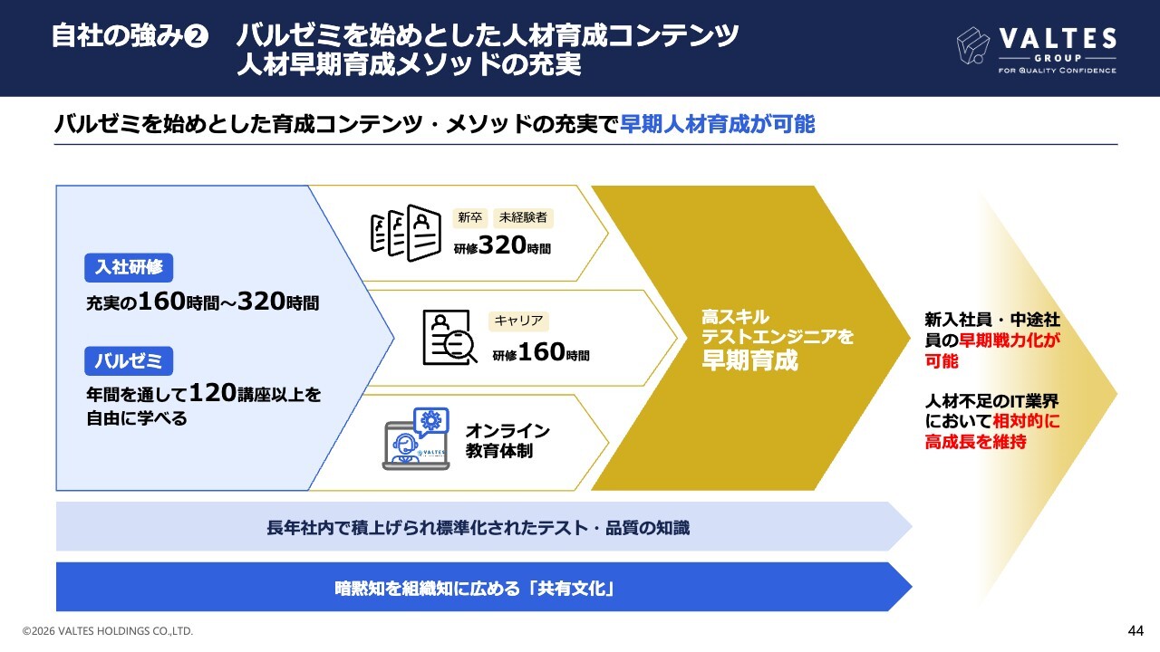 自社の強み② バルゼミを始めとした人材育成コンテンツ 人材早期育成メソッドの充実