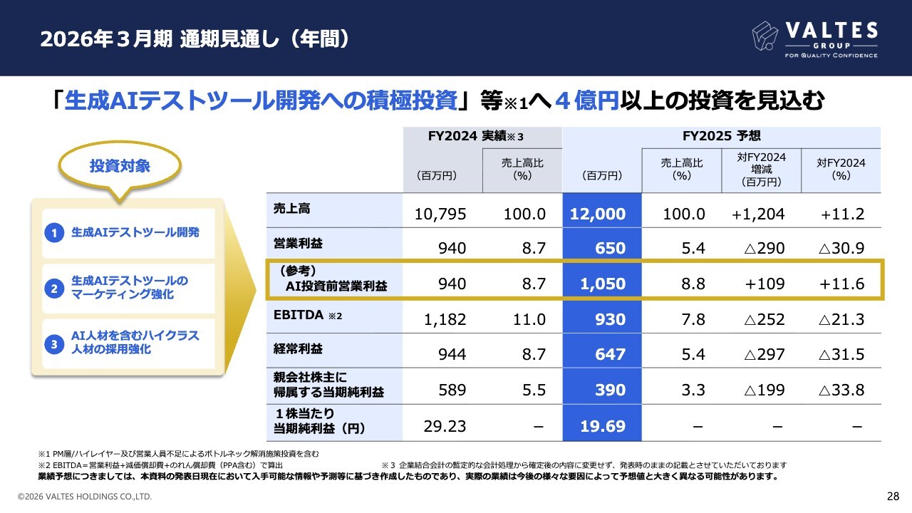 ここからは2025年2月14日に発表した、生成AIテストツール開発投資方針についてご説明します。詳細は当社HPに掲載の「2025年3月期第3四半期決算説明資料」をご確認ください。
