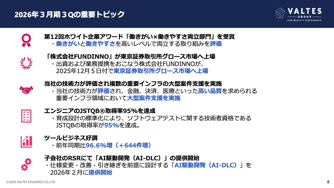 当第3四半期の主なトピックをご紹介します。