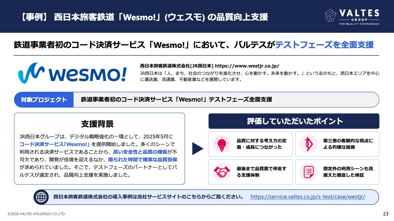 JR西日本グループさまが、デジタル戦略強化の一環として、2025年5月に提供開始されたコード決済サービス「Wesmo!」において、バルテスがテストフェーズを全面支援することとなりました。