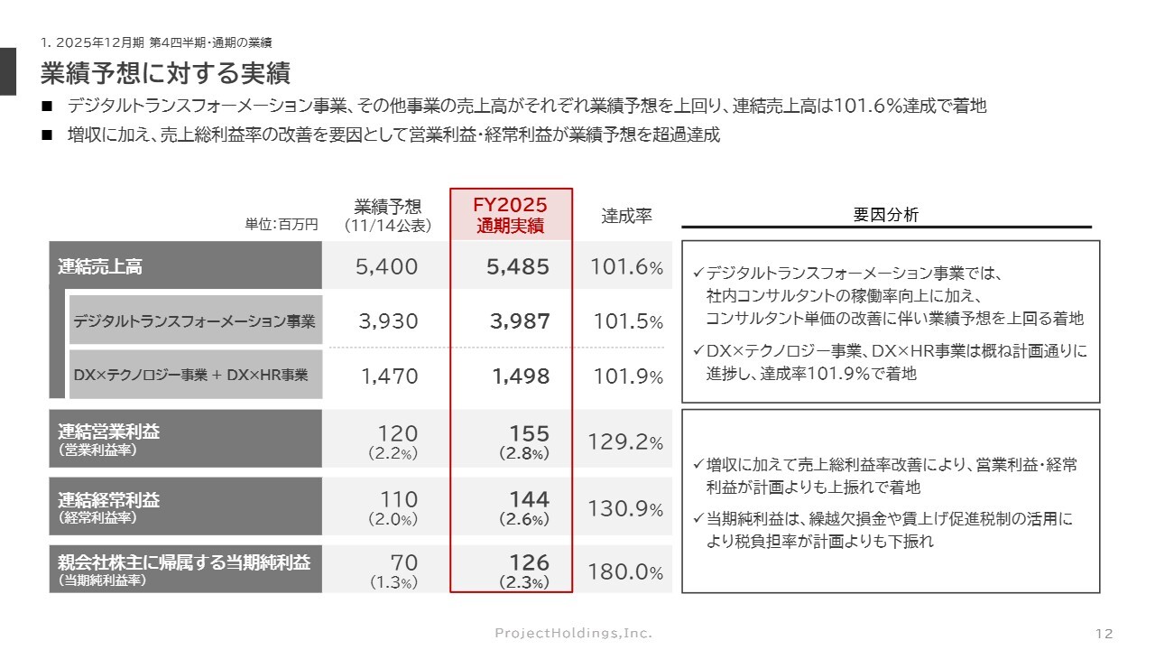 松村諒氏:株式会社プロジェクトホールディングスの2025年12月期通期決算説明会を開始します。取締役執行役員CFOの松村です。本日はお忙しい中、当社の決算説明会にご参加いただき、誠にありがとうございます。