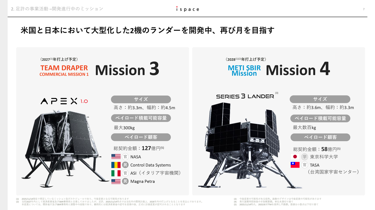 また、着陸船も1基のロケットを利用するため、相乗りではありませんが、ロケットの打ち上げが同じ時期に行われる可能性もなくはありません。当社としては、Mission 3をより早く打ち上げられるように、しっかりと取り組んでいきたいと考えています。