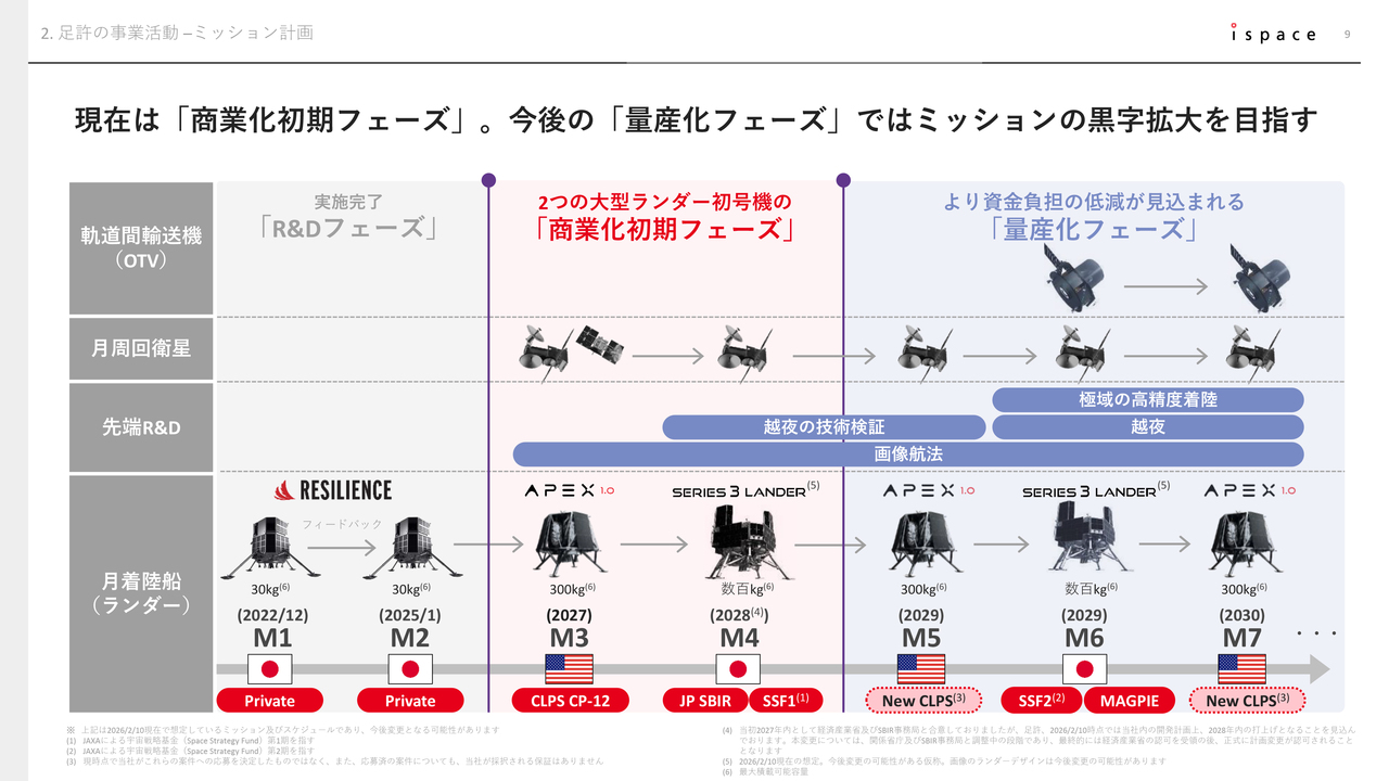 これにより利益を向上させ、最初の輸送サービス、当社ではペイロードサービスと呼んでいますが、そのサービスにおいてMission 5やMission 6あたりから、ミッション単体として利益が出る構造を作っていきたいと考えています。