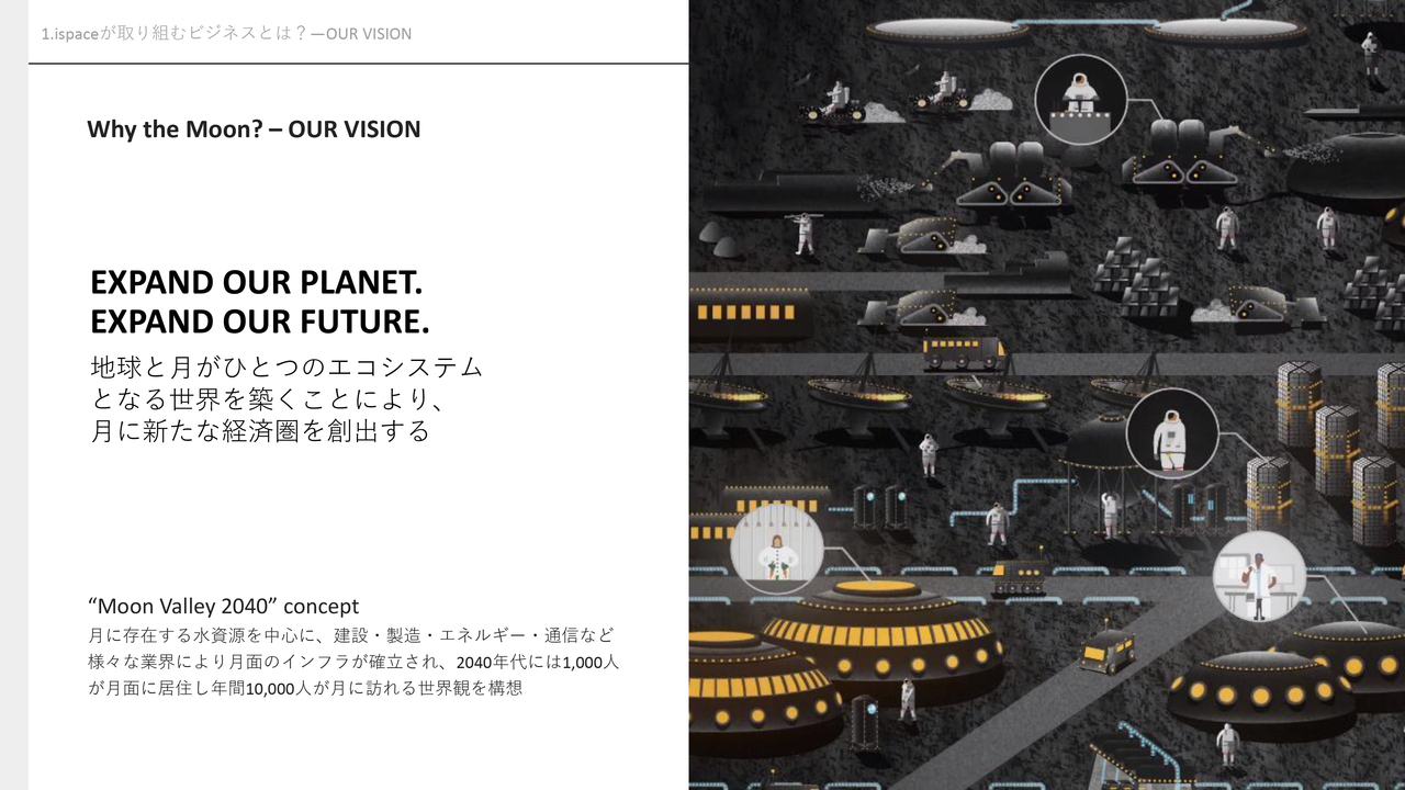 袴田:動画の中にもありましたが、当社のビジョンは「EXPAND OUR PLANET. EXPAND OUR FUTURE.」です。人間が宇宙に生活圏を築けるような世界を創りたいという背景があるメッセージになります。