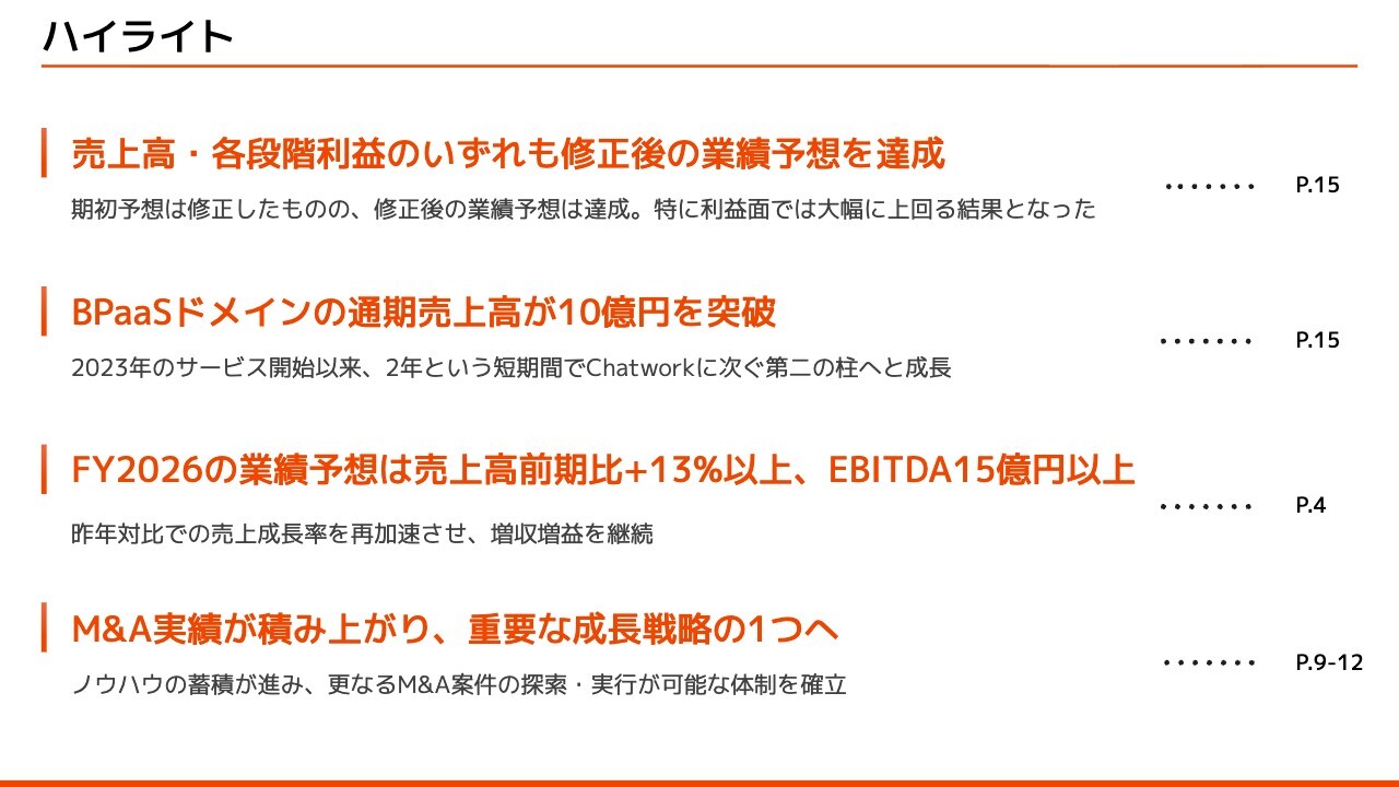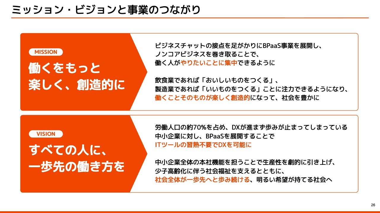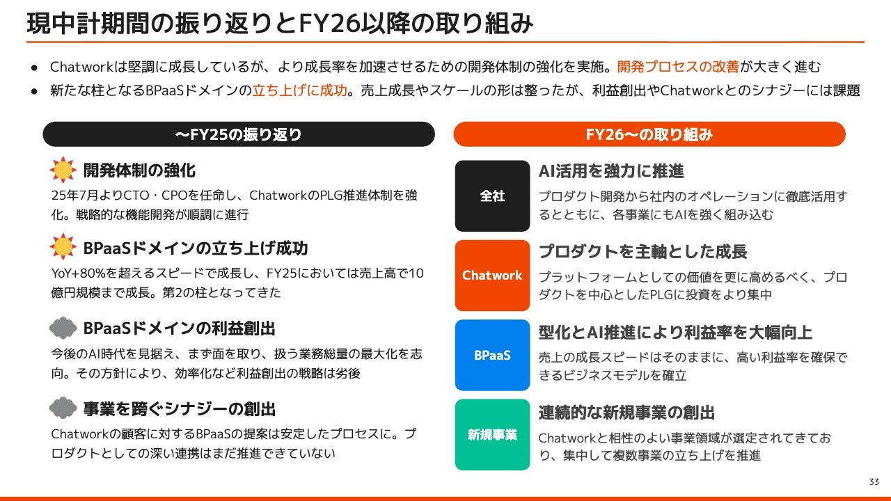 また、FY25では売上高がBPaaSで10億円を超える規模となり、「Chatwork」と並ぶ第2の柱へ成長してきたと感じています。このスピードでこの領域を立ち上げられたことは、非常に大きな成果だったと思います。