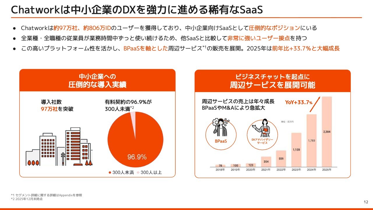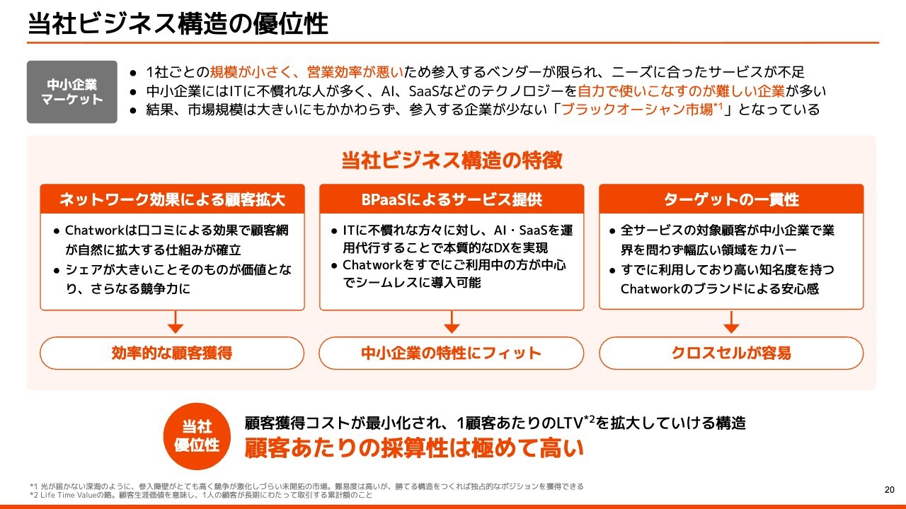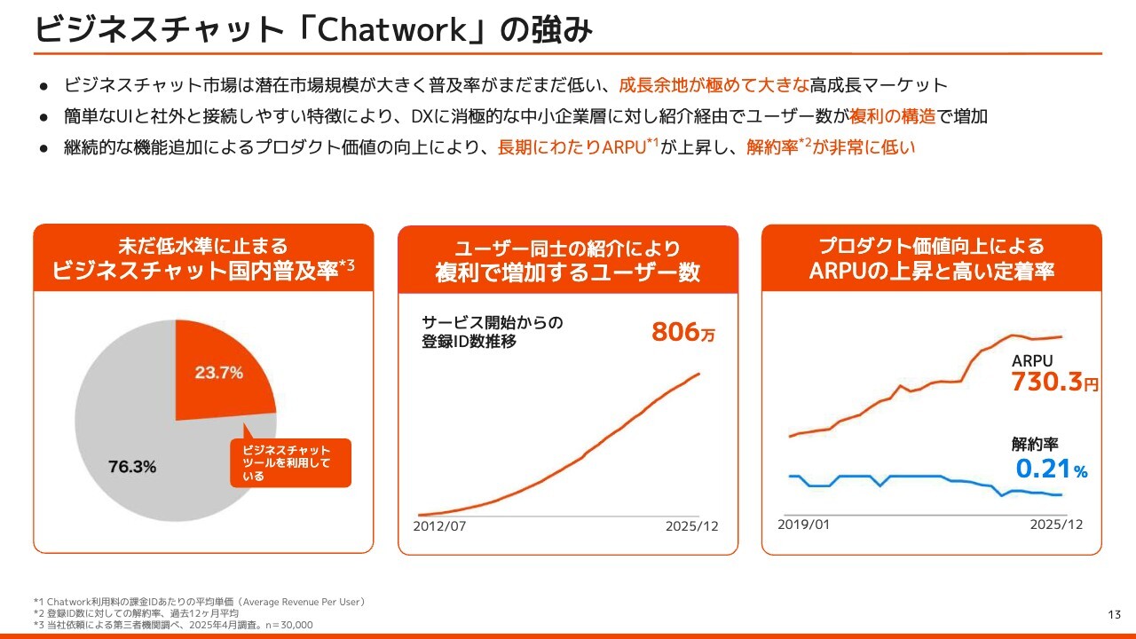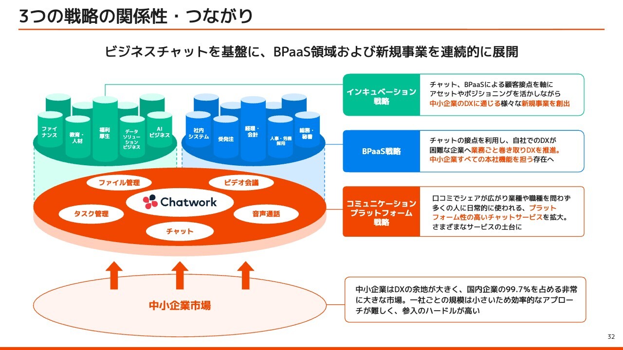 ここは誰も手を出せなかった市場ですが、中小企業向けに口コミで広がる「Chatwork」というプロダクトを持っている点で、当社は非常に稀有なポジションにあると考えています。