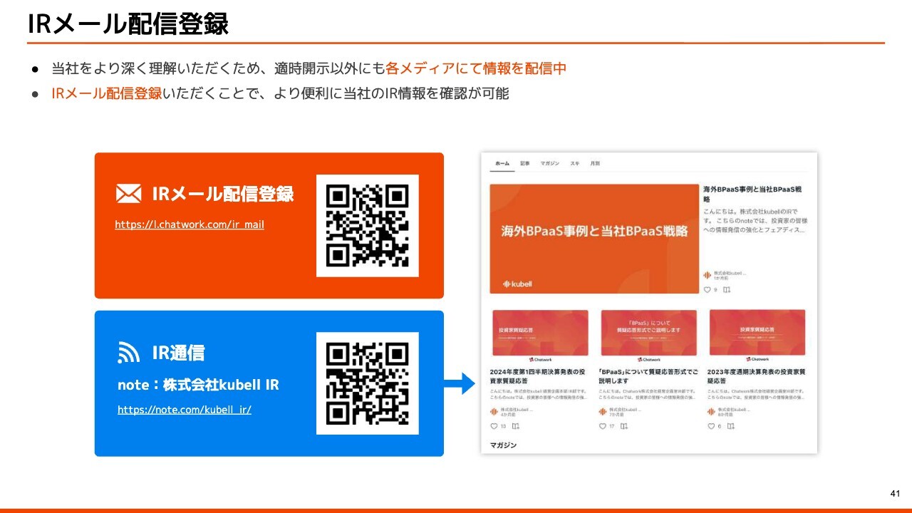 山本:IRではさまざまなメール配信を行っているため、ぜひご登録ください。当社からの情報発信を受け取ることができるため、ぜひチェックしていただければと思います。QRコードを読み取ることで簡単に登録が可能です。よろしくお願いします。