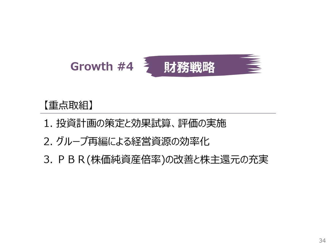 荒賀:Growth#4の財務戦略としては、スライドに記載の3つの重点取組を進めていきたいと考えています。