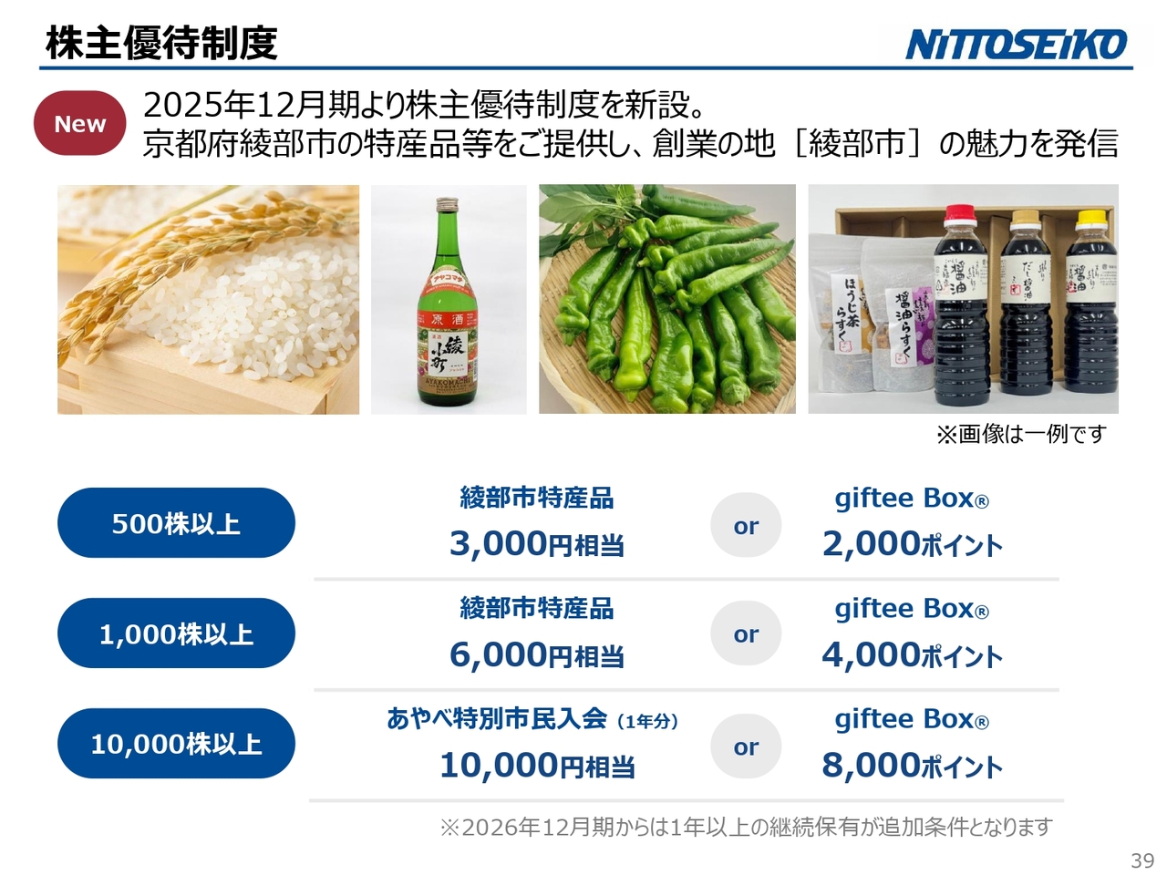 荒賀:2025年12月期より株主優待制度を新設しました。本社がある京都府綾部市の特産品を株主優待に盛り込むことで、株主のみなさまに還元し、地域の発展にもつながる取り組みを実施したいと考えています。