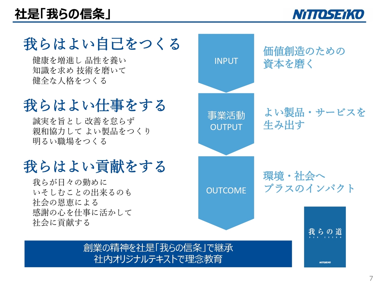 荒賀:会社の経営理念として、「我らの信条」を掲げています。「我らはよい自己をつくる」で価値創造のための人的資本を磨きます。そして、「我らはよい仕事をする」でよい製品・サービスを生み出します。さらに、「我らはよい貢献をする」で環境・社会にプラスのインパクトを与えます。これらを理念として取り組みを続けてきました。