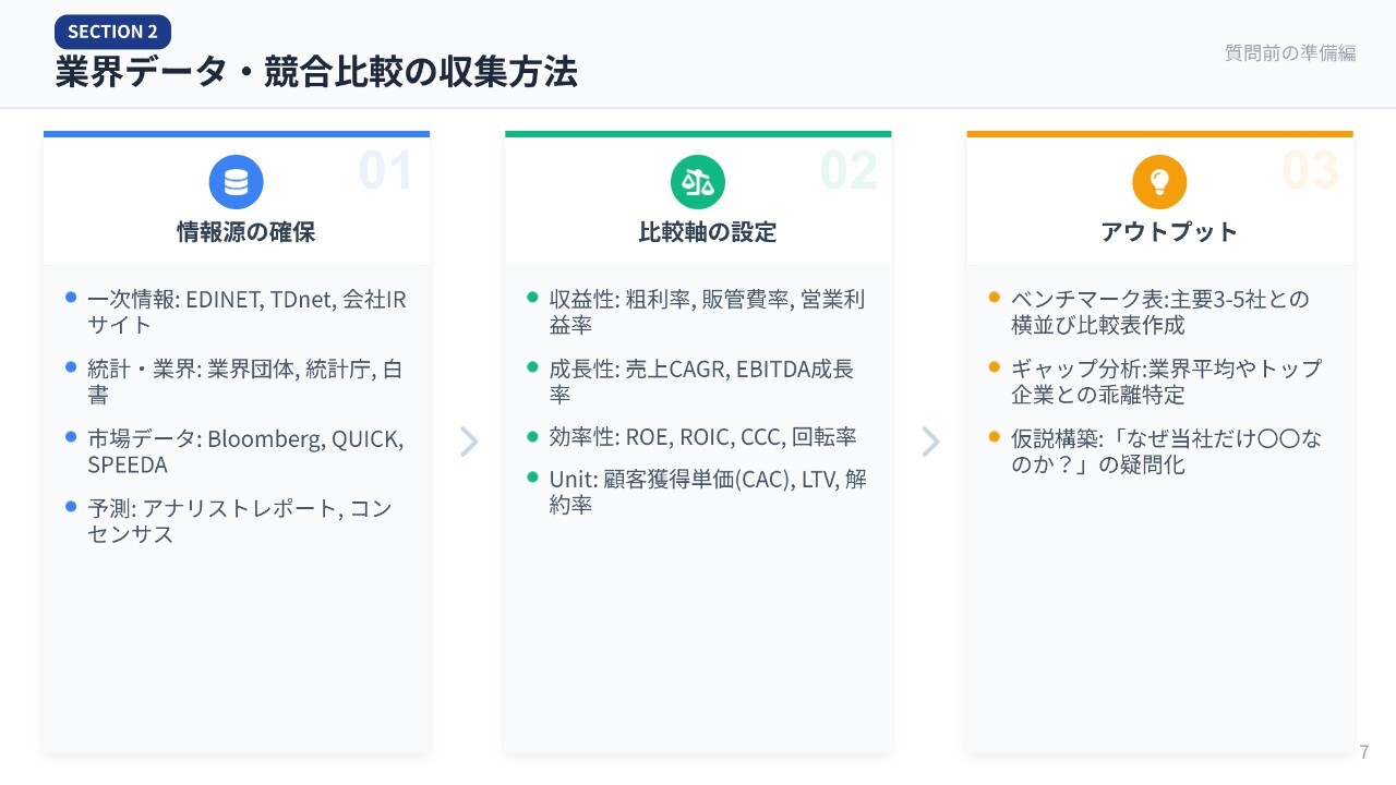 業界データ・競合比較の情報収集方法についてです。