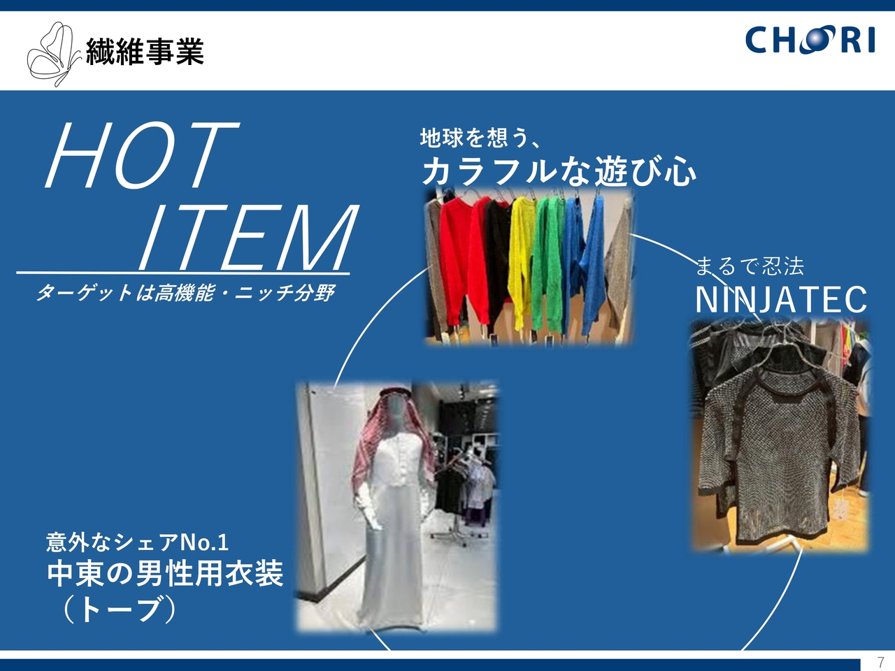 まずは、蝶理の売上の49パーセントを占める中核事業である繊維事業についてです。