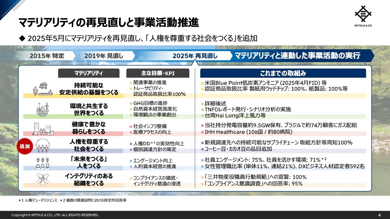 マテリアリティの再見直しと事業活動推進