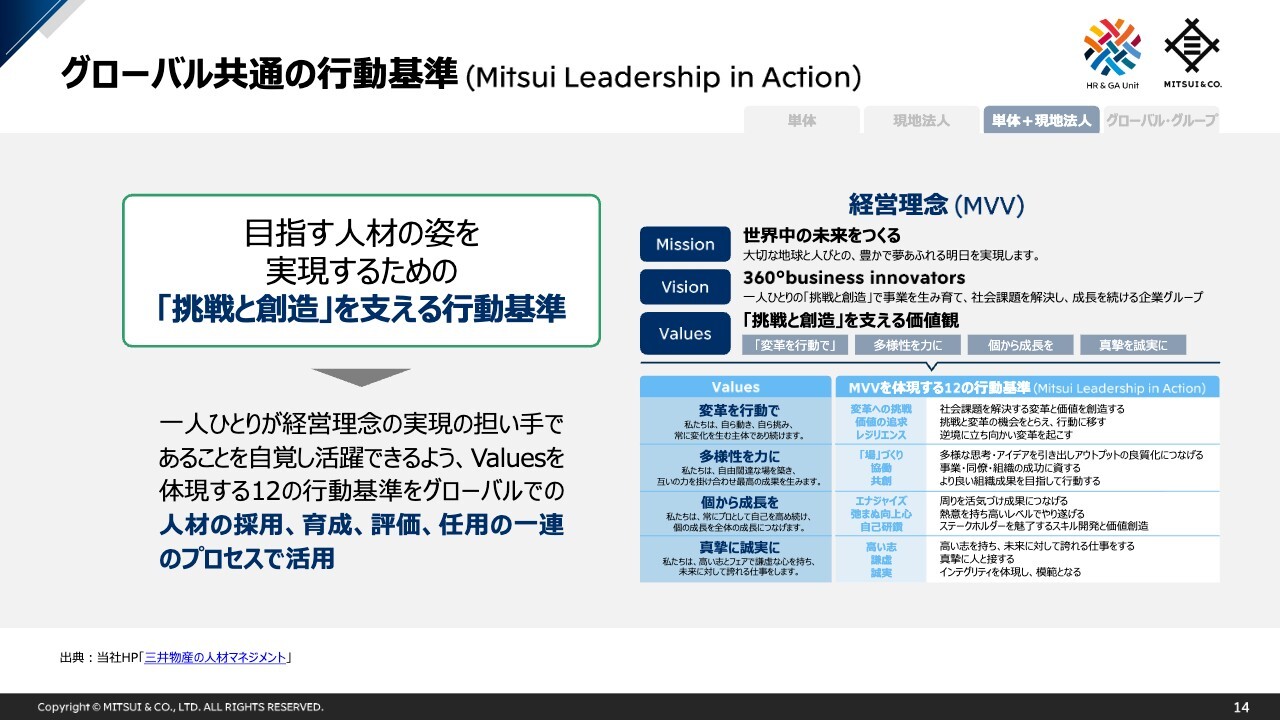 グローバル共通の行動基準(Mitsui Leadership in Action)