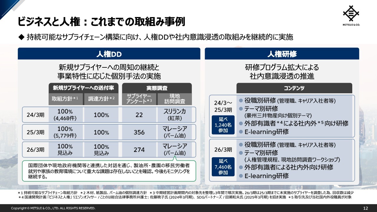 カバー率について、当社は昨年から人権デューデリジェンスの実施主体を、サステナビリティ経営推進部から事業本部に切り替えています。これによって、全社で見るとサプライヤー数が多くても、事業本部ごとに対応することでカバー率の低下は懸念されないものと感じています。