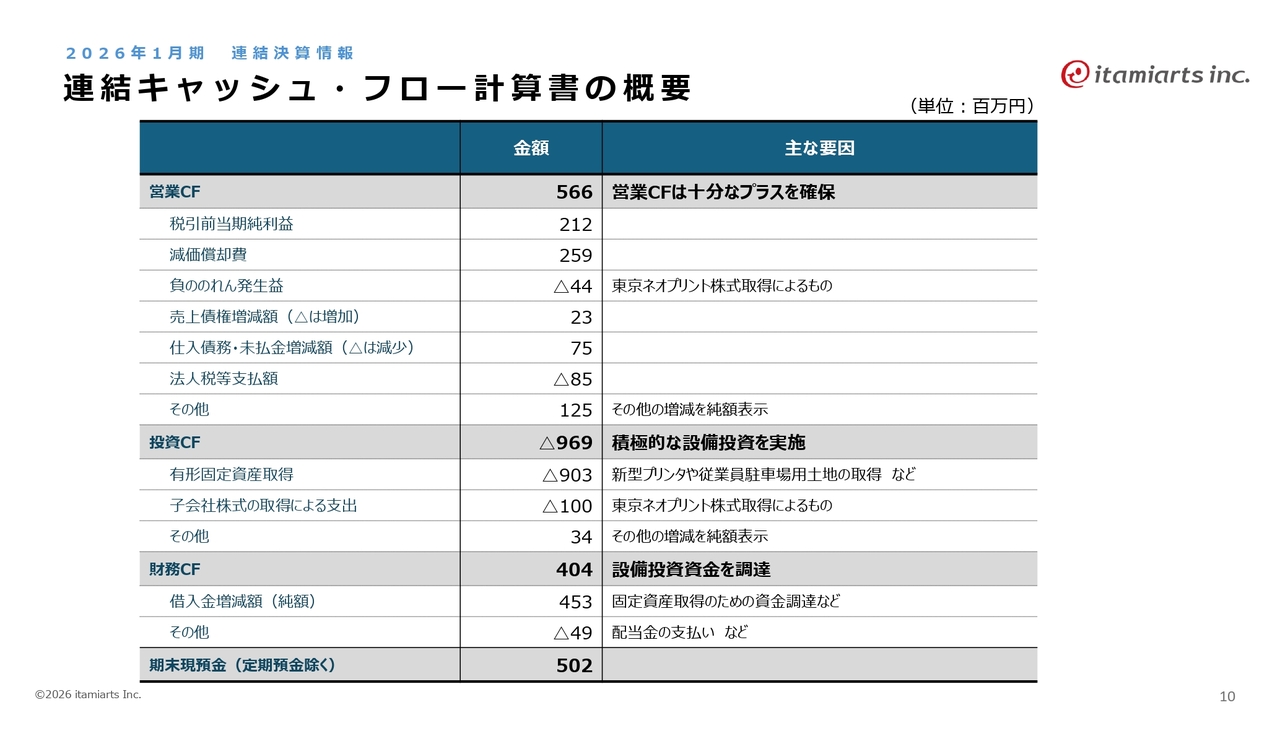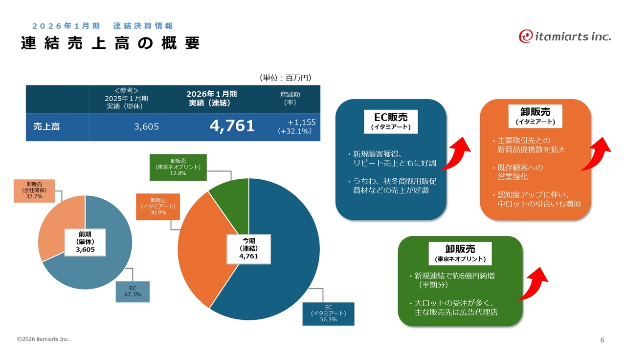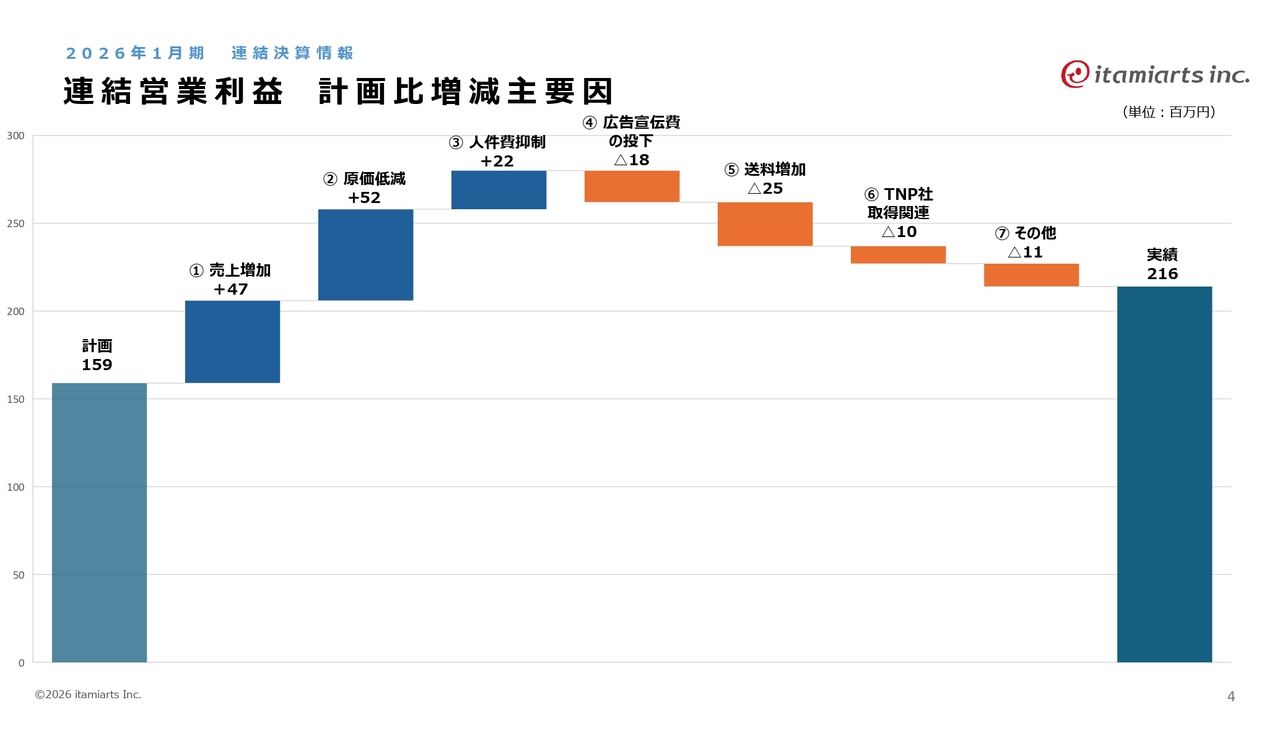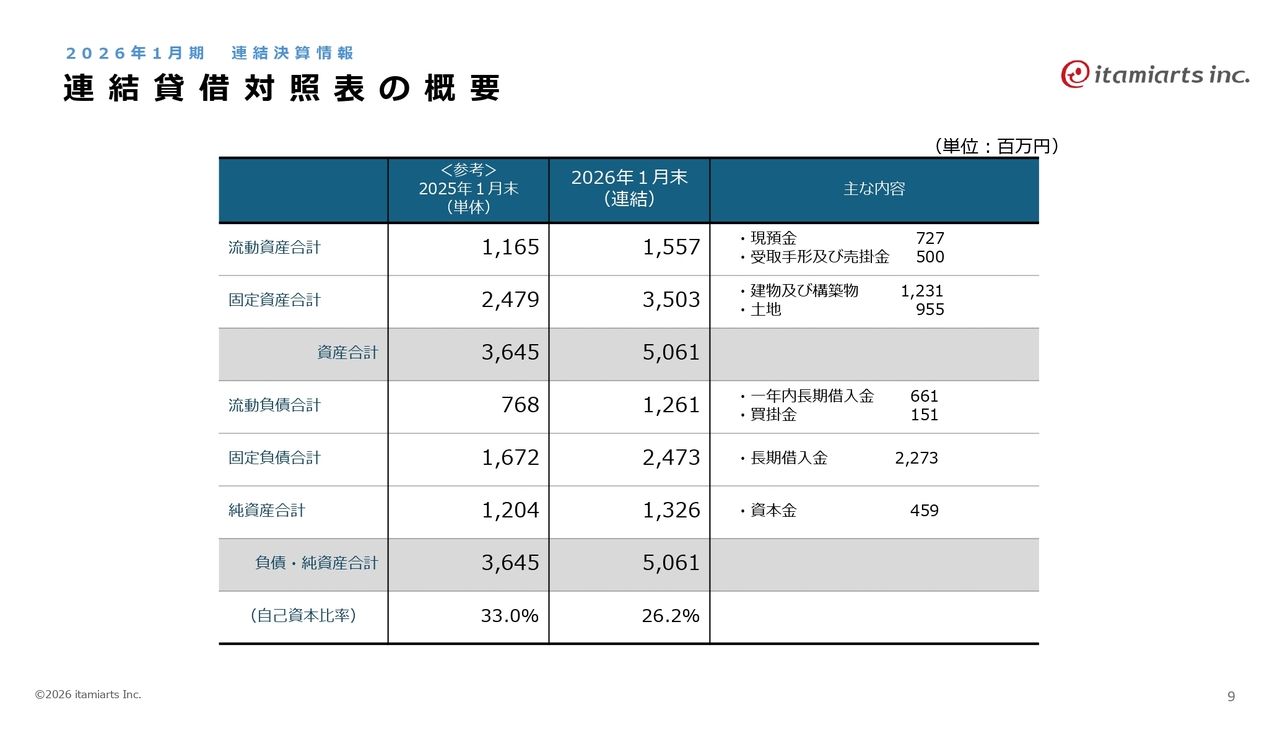 2026年1月期連結決算の情報です。イタミアートにとって、今回が初めての連結決算となります。